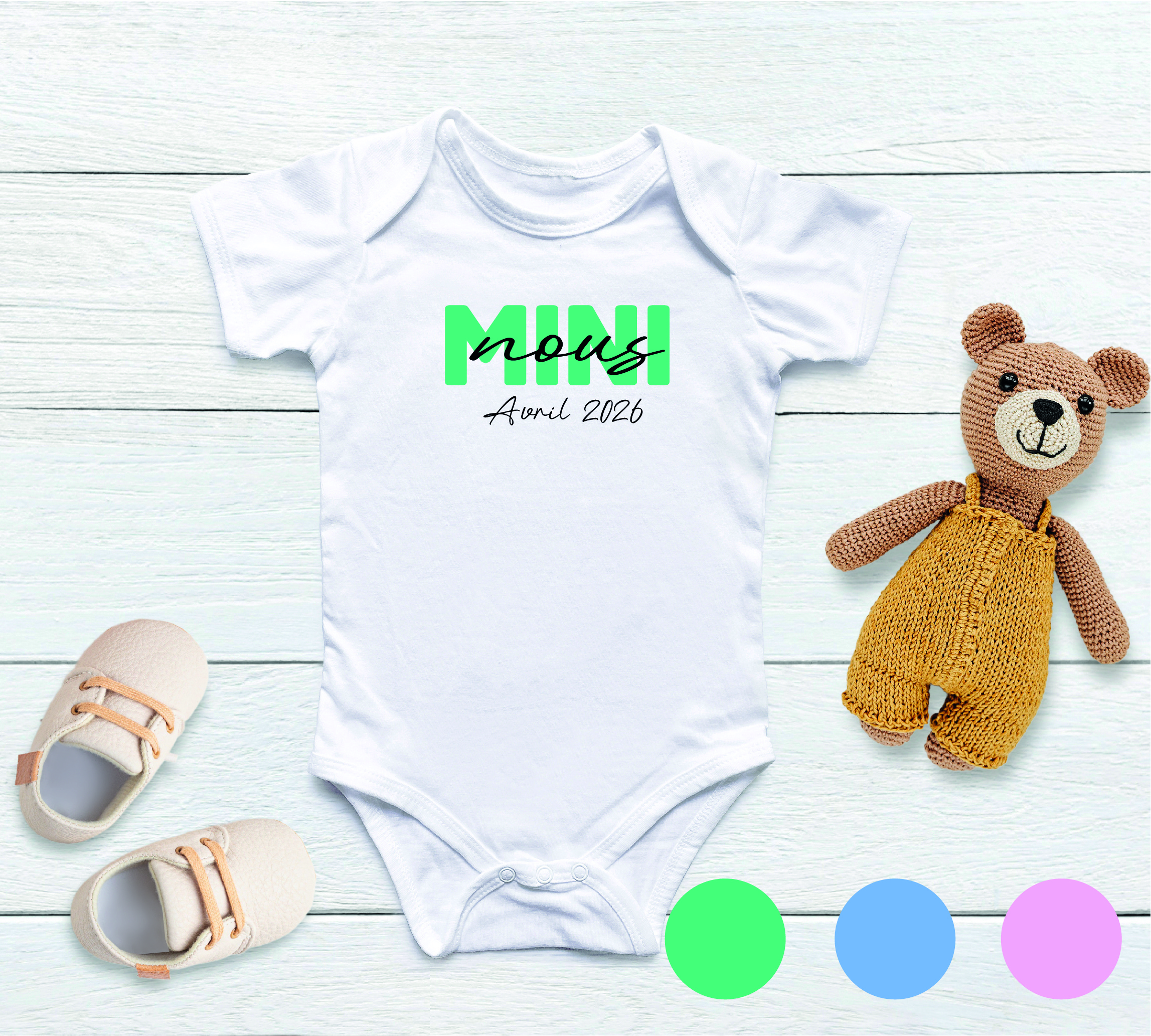 Offrez un souvenir inoubliable avec notre body bébé – Mini nous, pensé pour célébrer les plus beaux moments de la vie : naissance, baby shower, baptême ou première rencontre 🤍